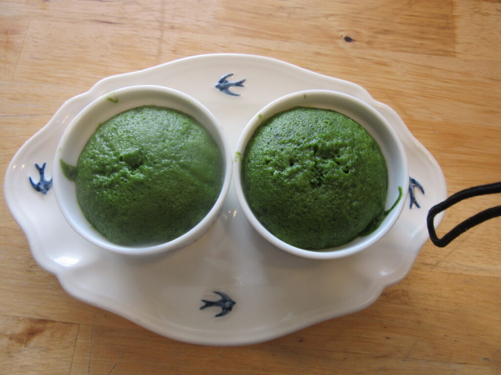 今日の手作りおやつは、「抹茶蒸しパン」。